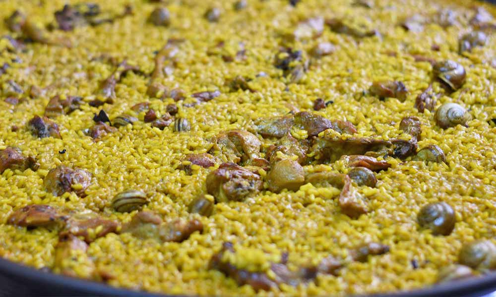 Pídelo antes de las 12h. Precio ración – Mín. 3 pers. No se sirve en paellera. Lleva conejo con caracoles.
