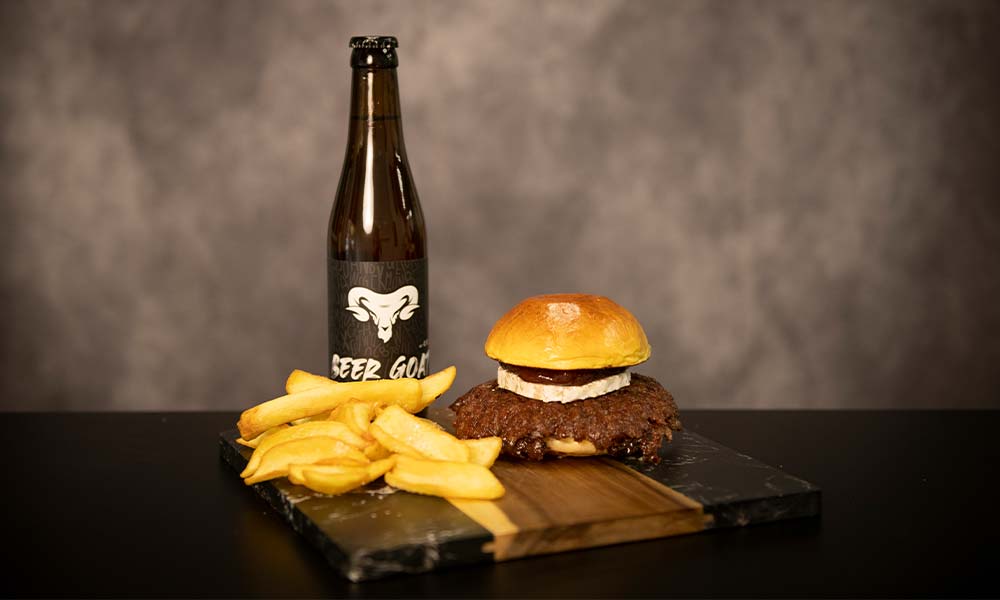 Goat Smash Burger + patatas + bebida. Puedes indicar cualquier detalle al finalizar el pedido