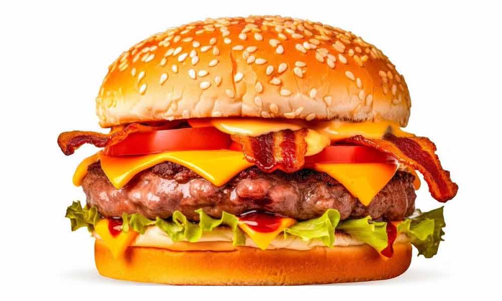 Carne de pollo o ternera, lechuga, tomate, cebolla, queso, jamón york, bacon y salsa.