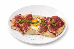 14,90 €Mozzarella, calzone con nata, jamón ibérico, huevo y pesto.