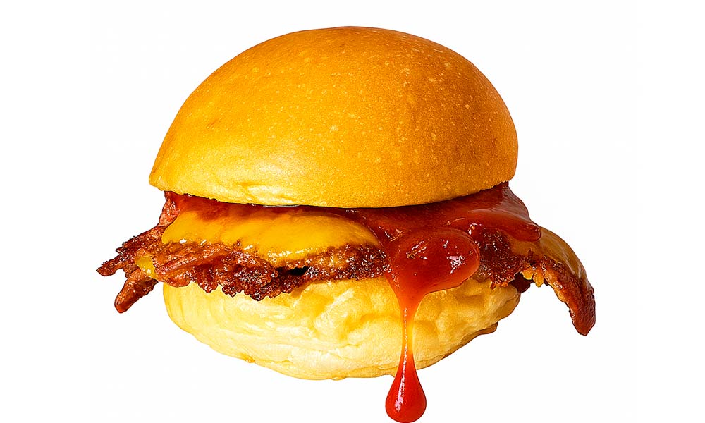 160 gr de carne de vacuno premium en dos carnes, bacon, cheddar, pepinillos y salsa BBQ en pan brioche casero. Incluye por separado salsa de kétchup, mayonesa y mostaza.