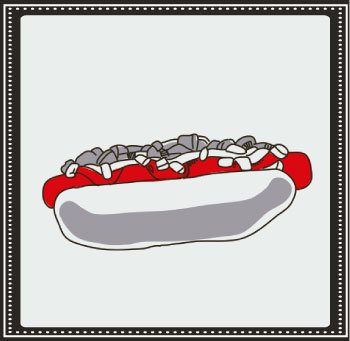 Pan Rock & Roll (brioche), salchicha tipo Frankfurt, nuestra salsa de queso cheddar y cebolla crispy.