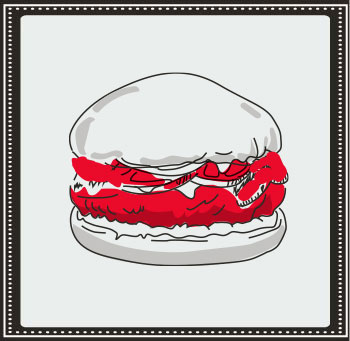 Carne de pollo 100g, lechuga, tomate y cebolla morada en pan brioche.