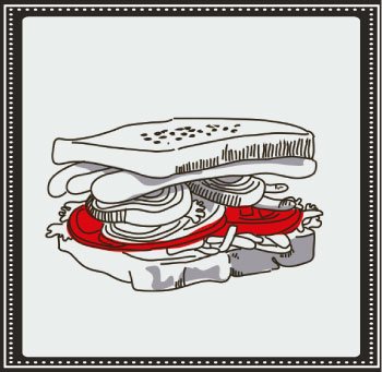 Pan de molde, lechuga, tomate, cebolla, espárragos, huevo duro y mayonesa.