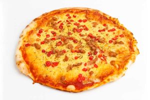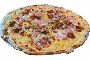 8,50 €Base de tomate, bacon, chorizo y longaniza.