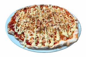 8,50 €Base de tomate, bacon, carne picada, mozzarella y salsa barbacoa.