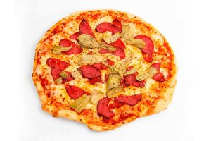 8,50 €Base de tomate, champiñones, alcachofa, pimiento rojo, mozzarella, olivas y... Ver más