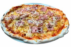 8,50 €Base de tomate, bacon, emmental, cebolla y cubierta de nata.